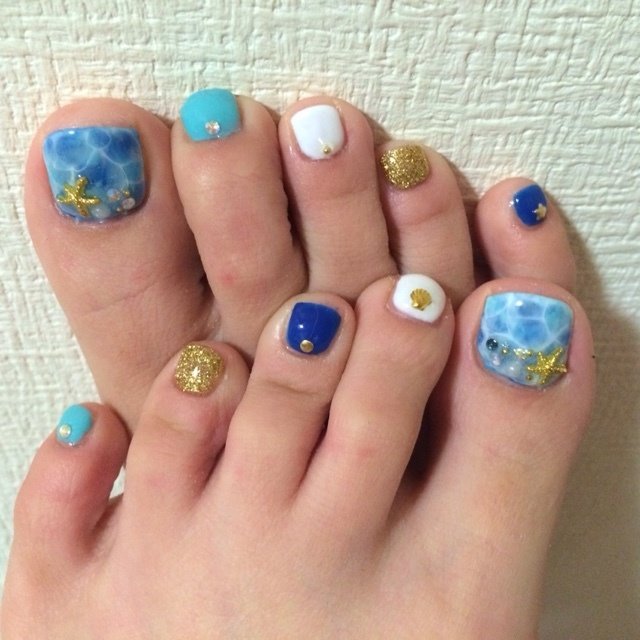 セルフネイル デザイン 夏 フット