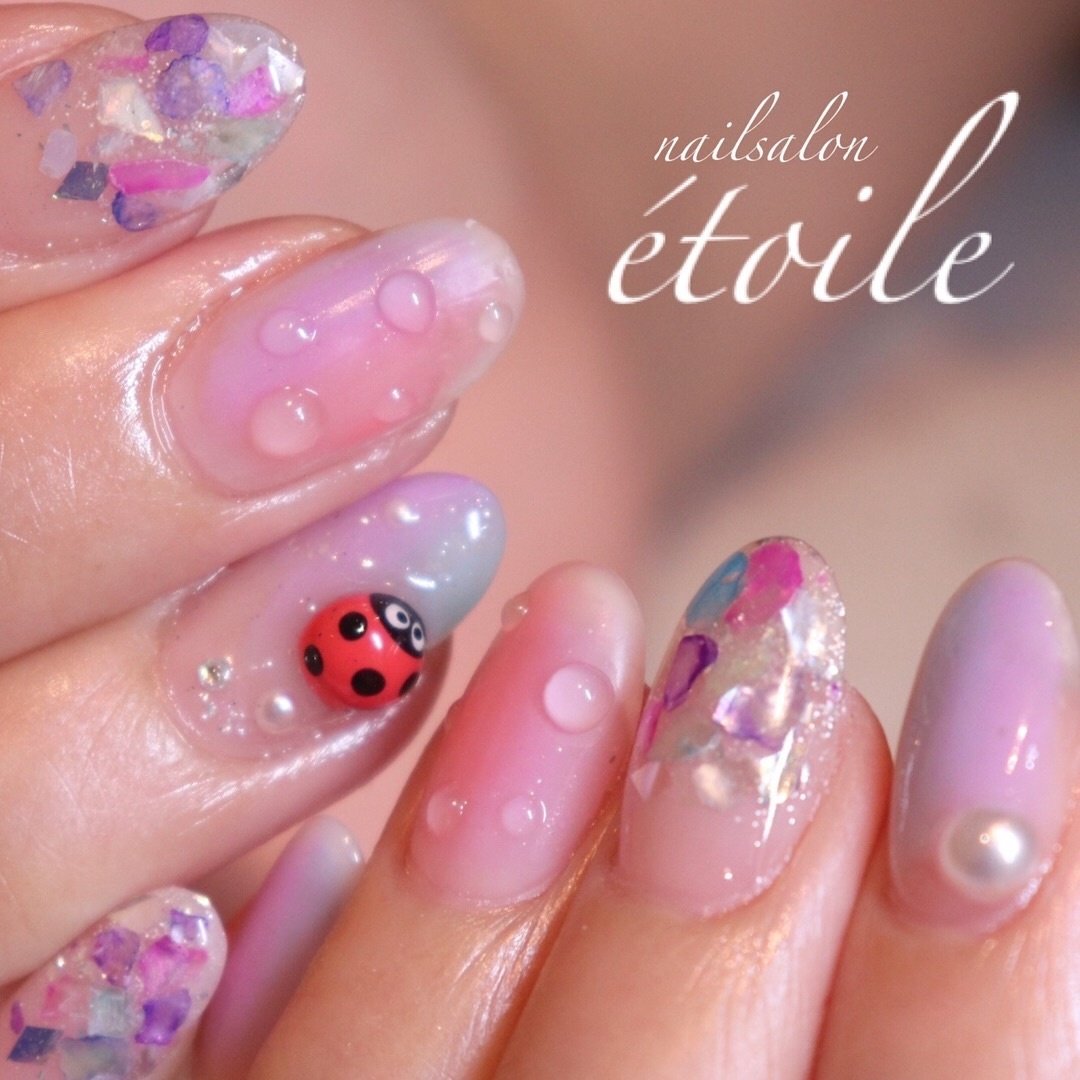 ピンク 水色 ネイル シンプル
