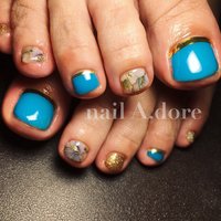 ネイル フット 夏 ターコイズ