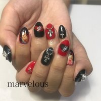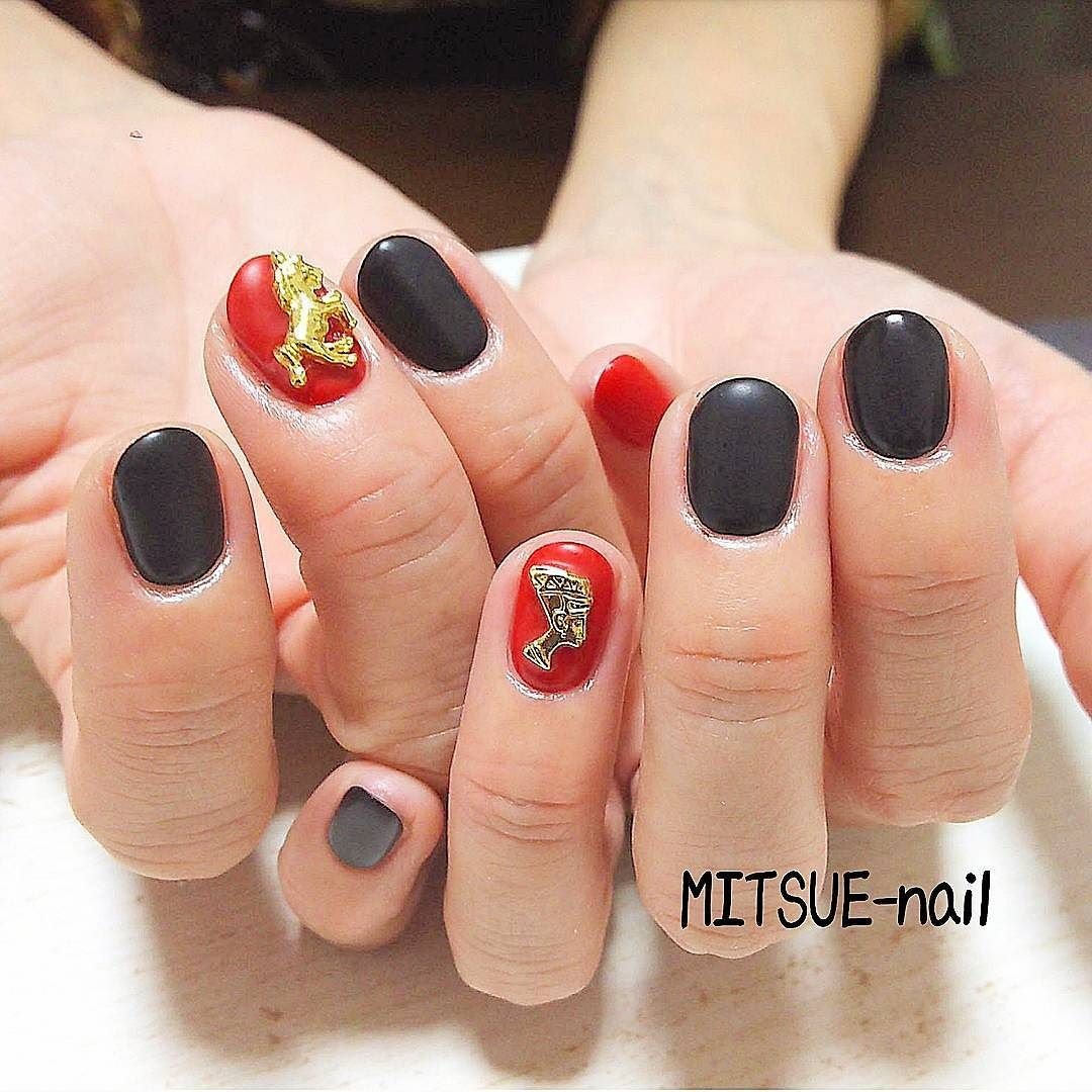 ネイル デザイン 赤 黒
