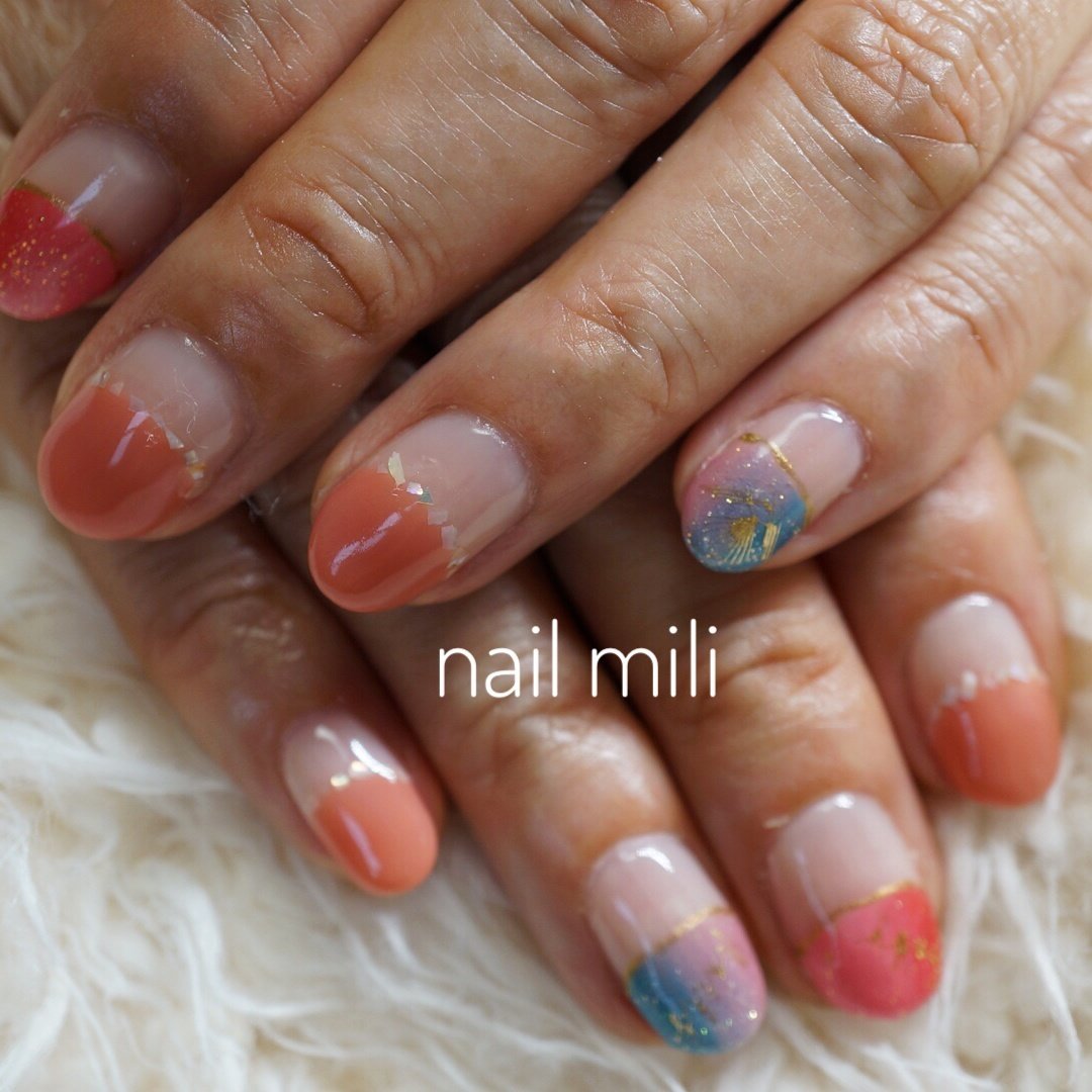夏 変形 フレンチ ネイル