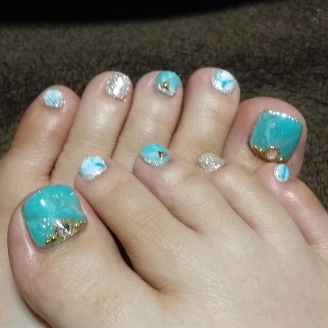 ネイル 夏 青 白