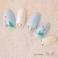 水色 ネイル 花