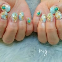 Nail nails nailart naildesign jelnail jelnails ネイル ネイルアート ジェルネイル 夏ネイル フレンチネイル ストレートフレンチ ターコイズグリーン 緑ネイル ネイル.